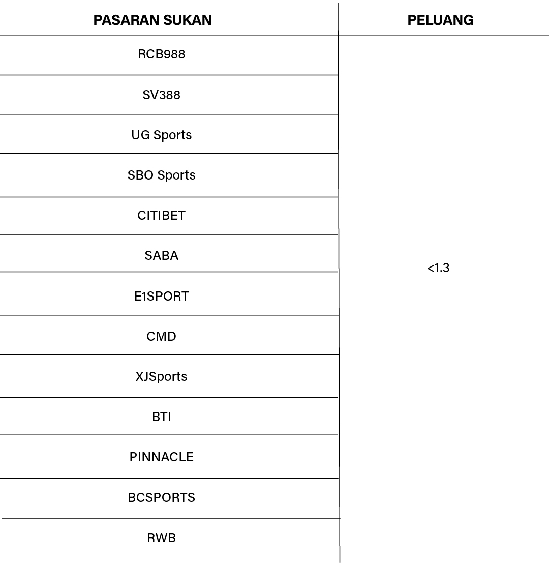 Untuk pasaran sukan, kami tidak akan mengira pertaruhan bonus dan pengiraan yang dinyatakan dalam jadual.